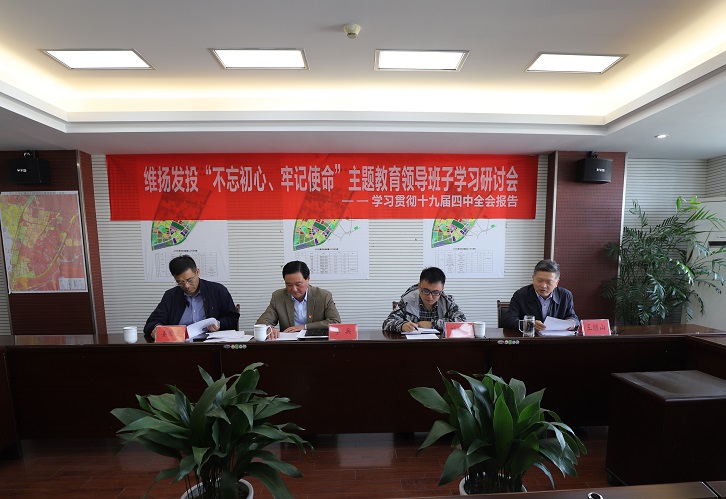11月14日,公司黨支部書(shū)記、董事長(cháng)李兵主持召開(kāi)維揚發(fā)投“不忘初心、牢記使命”主題教育領(lǐng)導班子學(xué)習研討會(huì ),集體學(xué)習中國共產(chǎn)黨第十九屆中央委員會(huì )第四次全體會(huì )議精神,并對抓好學(xué)習貫徹提出明確要求。區委第八巡回指導組成員劉鍇寧同志到會(huì )指導,公司黨支部全體黨員列席參加學(xué)習。 李兵指出,黨的十九屆四中全會(huì )總結了中國特色社會(huì )主義制度和國家治理體系所具有的13個(gè)方面的“顯著(zhù)優(yōu)勢”,對國家制度、國家治理體系和治理能力現代化作出13個(gè)“堅持和完善”的部署,為堅持和完善中國特色社會(huì )主義制度、推進(jìn)國家治理體系和治理能力現代化指明了努力方向。 李兵強調,要把學(xué)習貫徹全會(huì )精神與開(kāi)展“不忘初心、牢記使命”主題教育活動(dòng)相結合,認真學(xué)習,細致研讀,深入思考,切實(shí)把全會(huì )精神吃透、把準。公司全體黨員職工要切實(shí)把學(xué)習貫徹黨的十九屆四中全會(huì )精神與推動(dòng)當前各項工作緊密結合起來(lái),主動(dòng)學(xué)、帶頭學(xué),做學(xué)習十九屆四中全會(huì )精神的表率、做推動(dòng)各項工作落實(shí)的表率,不斷提升履行職責、行使權力、開(kāi)展工作的能力和水平。