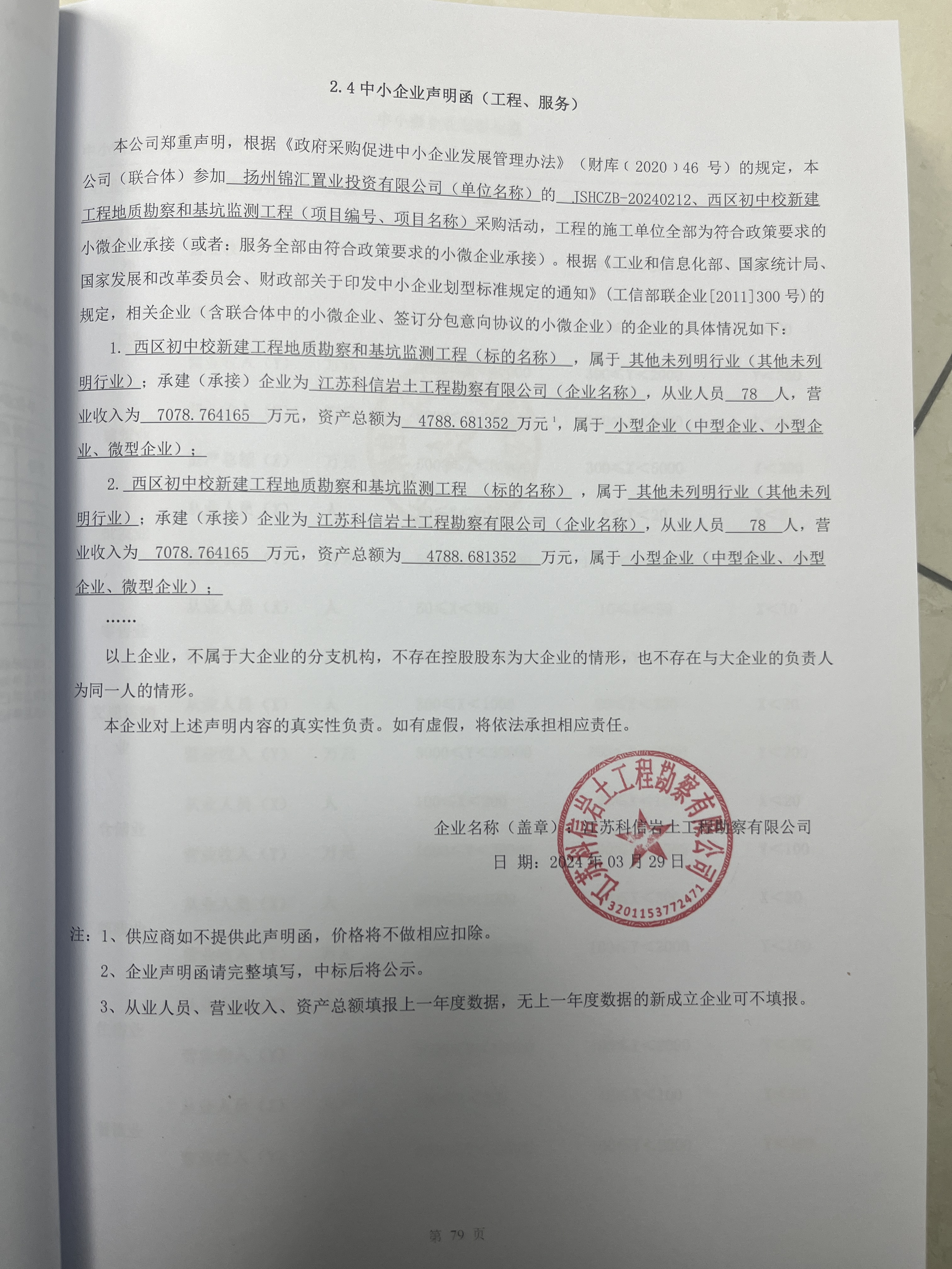 五、評審專(zhuān)家名單:趙慶華 陳艷 姚清 六、公告期限 自本公告發(fā)布之日起1個(gè)工作日。 七、其他補充事宜:無(wú) 八、凡對本次公告內容提出詢(xún)問(wèn),請按以下方式聯(lián)系 1、采購人信息 名 稱(chēng):揚州錦匯置業(yè)投資有限公司 地 址:揚州市邗江區潤揚北路8號幸福魔方商務(wù)樓6樓 聯(lián) 系 人:王艷 聯(lián)系電話(huà):0514-82120352 2、采購代理機構信息名 稱(chēng):江蘇匯誠投資咨詢(xún)管理有限公司 地 址:揚州市邗江北路68號旺角西入口三樓 聯(lián) 系 人:張琴 聯(lián)系電話(huà):0514-80827735 13952573302 3、項目聯(lián)系方式項目聯(lián)系人:張琴 電 話(huà):0514-80827735 13952573302 中小企業(yè)聲明函.png