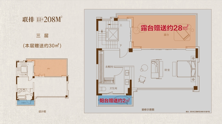 208戶(hù)型鑒賞: 大花園:戶(hù)均擁有約120㎡以上私屬庭院,可打造花園、茶室或親子活動(dòng)空間,延伸生活詩(shī)意 三開(kāi)間:約10.7米南向面寬,首層層高約3.6 米,采光通風(fēng)俱佳,營(yíng)造朗闊起居格局。 高附贈:地下室面積約108㎡,約 5.5 米挑高,可隔成兩層,打造影音室、健身房、酒窖等多元功能區;一層餐客廳挑空,可拓展約43㎡贈送空間;二層、三層配備景觀(guān)露臺,陽(yáng)臺半贈送;四層星空露臺全贈送,解鎖生活多重想象。